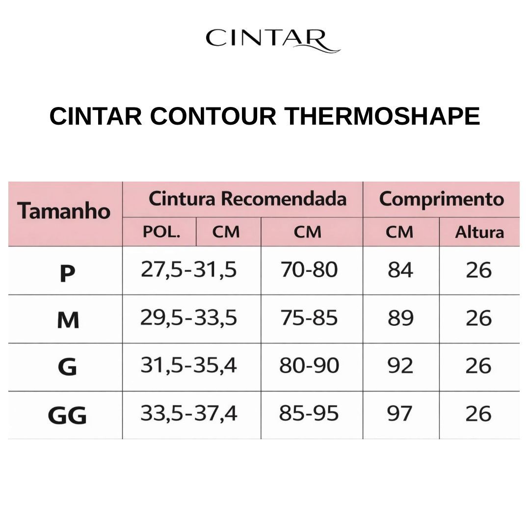 A Cintar Contour ThermoShape é uma cinta modeladora térmica estruturada desenvolvida para oferecer alta compressão abdominal, sustentação lombar e definição imediata da silhueta.